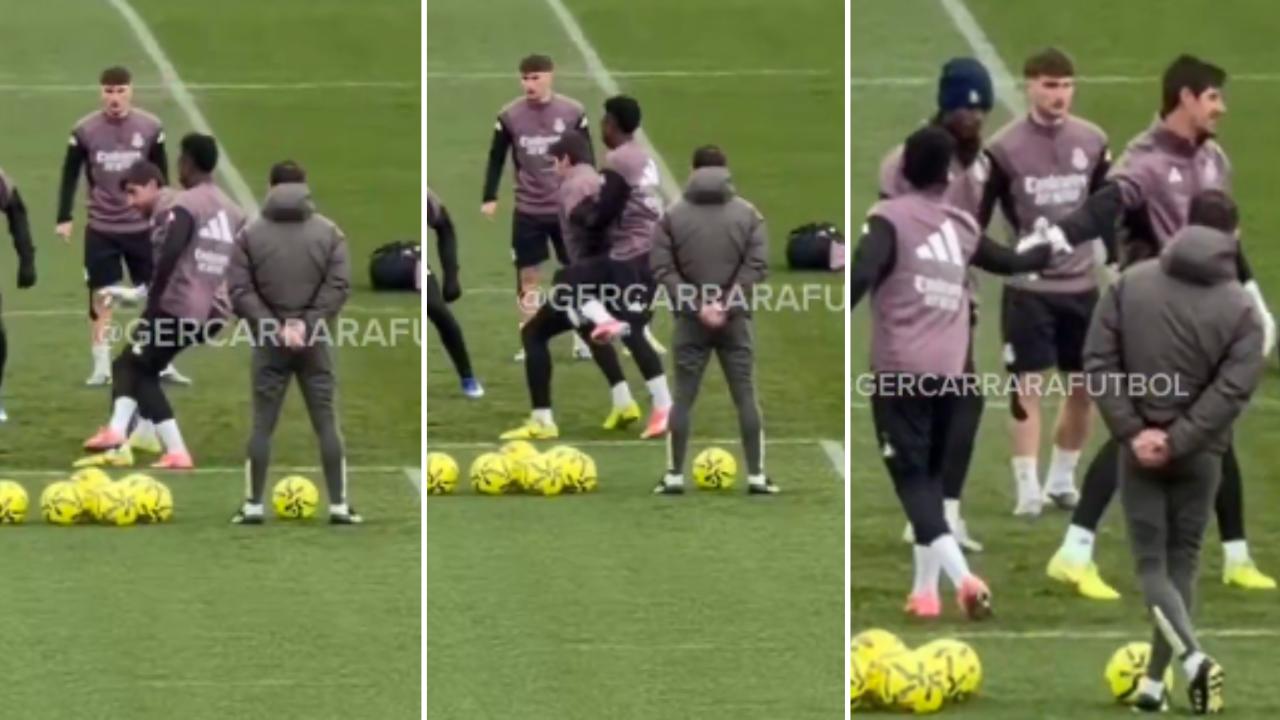 Thibaut Courtois volvió a ser protagonista en el entrenamientos del Real Madrid. Ya en la semana trascendieron imágenes sobre una entrada que le propinó a Kylian Mbappé y ahora por una secuencia similar con Vinícius.
