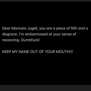 A lo que el atacante nigeriano contestó: «Querido Mamuka Jugeli, eres un pedazo de basura y una desgracia. Me avergüenza tu razonamiento. ¡Idiota! ¡Mantén mi nombre fuera de tu boca!».