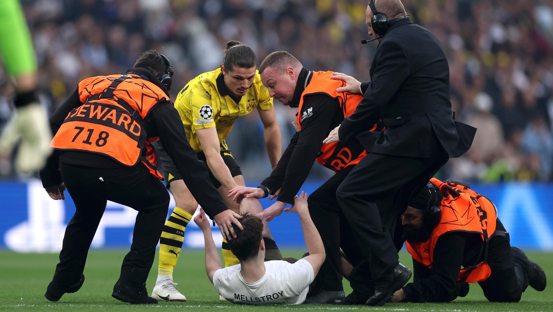 Por suerte, la intención era solo quedarse con el recuerdo. El juego de la Final de la Champions League estuvo parado cerca de dos minutos, pues la seguridad no podía atrapar al intruso.