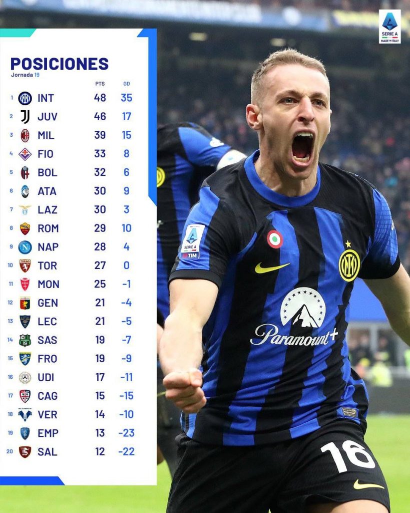 Inter de Milán venció a Hellas Verona, mientras la Juventus derrotó a Salernitana. De esta manera, se siguen escapando en la cima y parece que la Serie A será una discusión entre ellos dos.