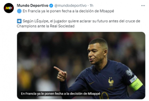De una manera u otra, lo que desea el PSG, de acuerdo a L’Equipe, es que Kylian Mbappé conteste cuanto antes o, por lo menos, antes de duelo de ida con la Real Sociedad por los Octavos de Final de la Champions League del próximo 14 de febrero.