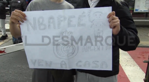 El Desmarque pudo captar el momento y lo que decía la pancarta en cuestión, en la cual se puede ver el logo de la Casa Blanca y la frase »Mbappé ven a casa».