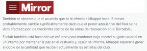 Según el medio inglés Mirror, Kylian Mbappé y Real Madrid tiene una primera diferencia en los contactos que mantuvieron recientemente para intentar llegar a un acuerdo para después de mediados del 2024.