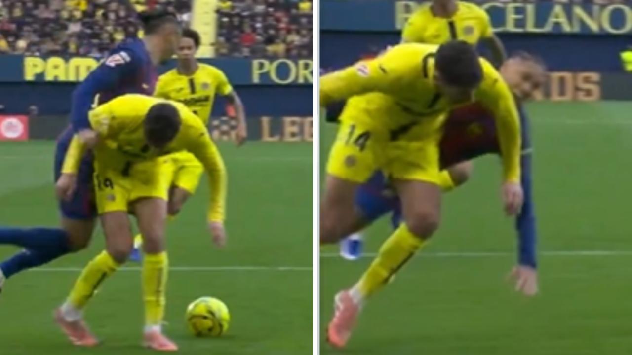 No obstante, la acción que fue interpretada como infracción dejó dudas en la repetición que se pudo apreciar en la transmisión. Santiago Comesaña Veiga no lo toca en su intento por quitarle el balón, pero Raphinha choca contra la cadera del futbolista de Villarreal.