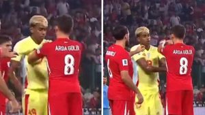 En un momento de pura tensión, el talentoso jugador del Real Madrid, Arda Güler, intentó cobrar una infracción con velocidad, pero se topó con la decidida resistencia de Lamine Yamal, la joven promesa del Barcelona, en duelo que disputaron Turquía y España por las Eliminatorias UEFA.