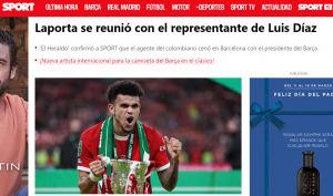 Según informa el diario colombiano ‘EL HERALDO’ y Sport de Cataluña, el representante de Díaz, Carlos Van Strahlen, se reunió con el presidente del Barça, Joan Laporta, para discutir un posible traspaso del jugador al club catalán.